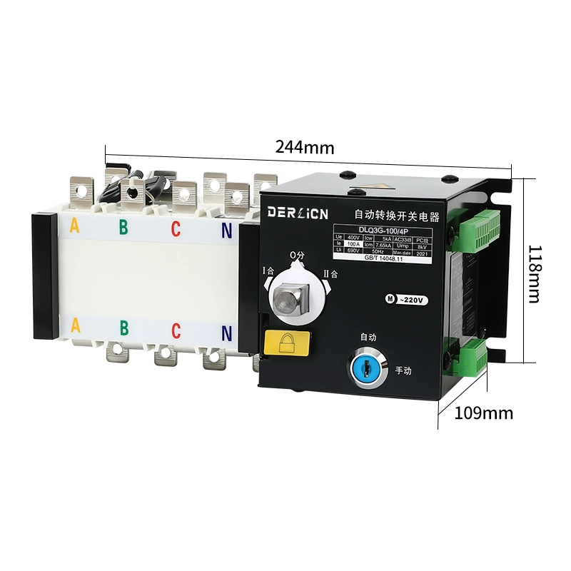 Built with an integrated motorized mechanism and advanced controller, the DLQ3G automatically monitors both the main and backup power supplies and performs seamless transfer when abnormal voltage, phase loss, or power outage occurs. The controller offers full-auto, remote, forced “0”, and manual operation modes, making it suitable for a wide range of industrial, commercial, and emergency backup applications.